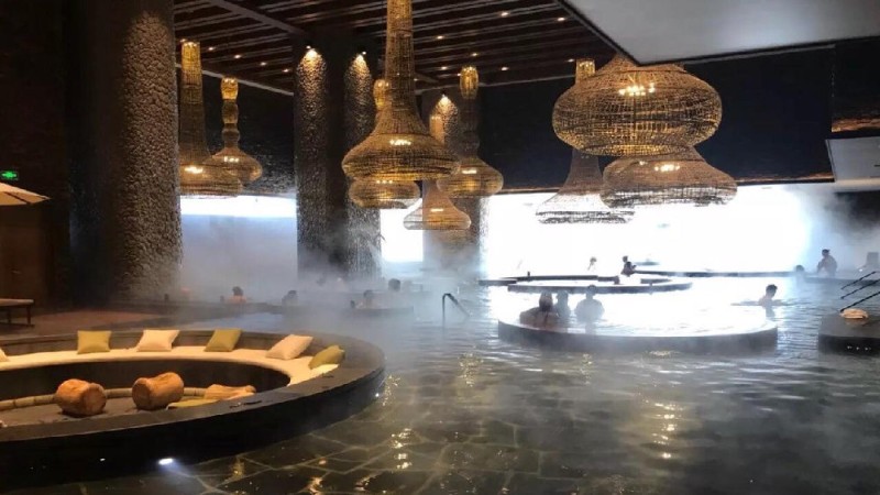4W平米的场地,有室内温泉泳池和室外露天温泉,是个让人一走进去就震撼,需要泡泡温泉压压惊的地方。