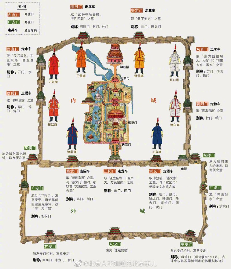图为根据《北平风俗地图》制作的清代北京城城门图