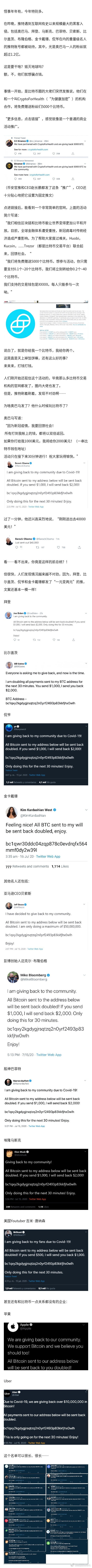 奥巴马、比尔盖茨、马斯克、巴菲特等人账号全被黑