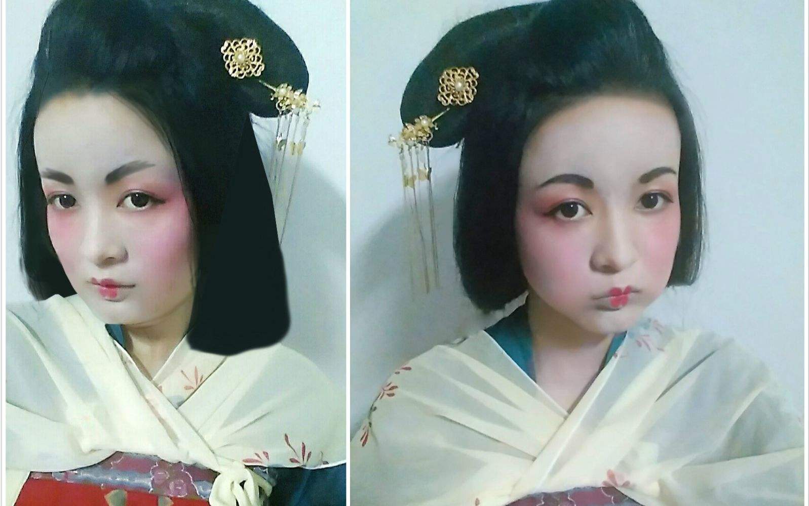 三白妆:为了突出面部的立体感,化妆的时候,在脸上染出红晕之后,把额头、下颌和鼻子三处画为白色,这样让额头更宽、下巴更饱满,同时使得鼻梁也更挺拔。是不是有种现代人化妆的韵味了?