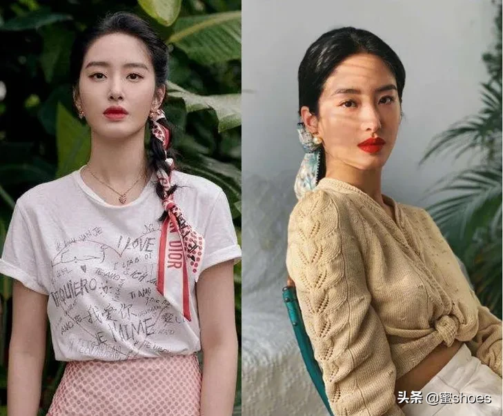 唇厚而无型+唇纹重,过厚的唇还显得有点嘴凸,构成了整个下庭土糙感的核心。以上四点是她原生长相略显土糙的主要原因,当然还有深肤色和大脑袋,像其他女演员一样走邻家少女风格是不占优势的。
