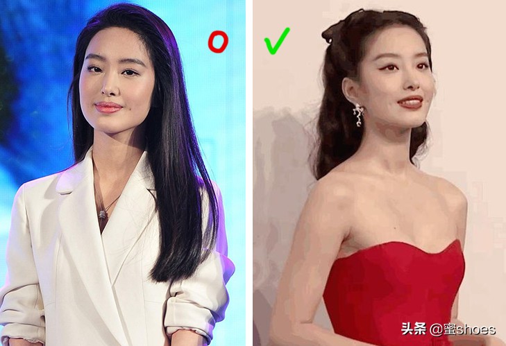 舒淇是典型的扁方脸,但看上去依然很精致。最主要的原因是她们走热情性感路线,下庭的钝感正好契合这种自信+英气的气质,如果下庭尖削,性感反而多了风尘味。但如果温柔乖乖女风搭配扁方脸,气质上的内敛和骨相上的外放拧巴地组合在一起就会产生土味,很奇妙。