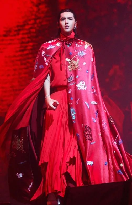 外面披了Vivienne Tam祥云刺绣斗篷,一身红色满身侠气,试问谁不想和这样的吴亦凡一起去浪迹天涯呢?