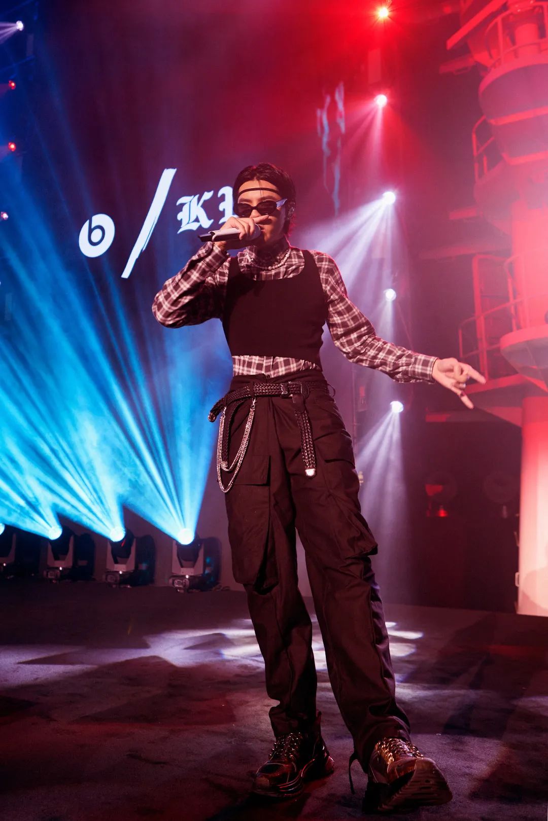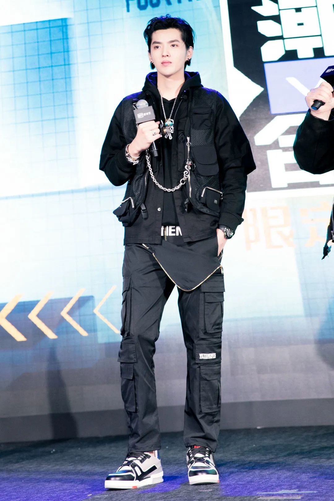 单说《中国新说唱》总决赛的这身造型,上半身黑色系工装风,下半身长筒袜配运动鞋,再来个蓝色墨镜,简直把“混搭”玩得前卫又精彩,什么搭配穿在他身上都成立。