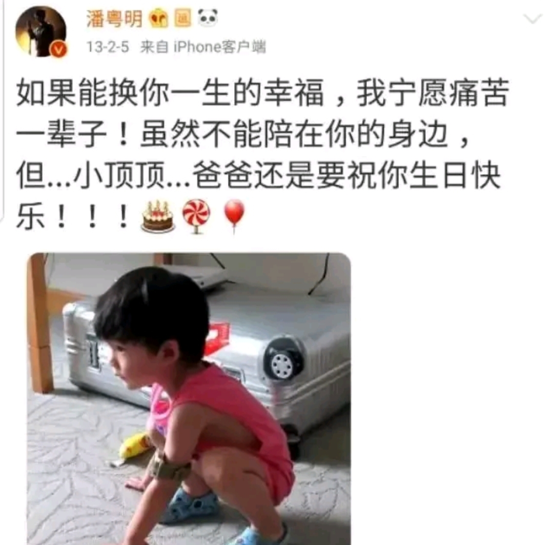 以至於在頂頂過生日的時候,潘粵明只能在社交平台上發文為兒子慶生。