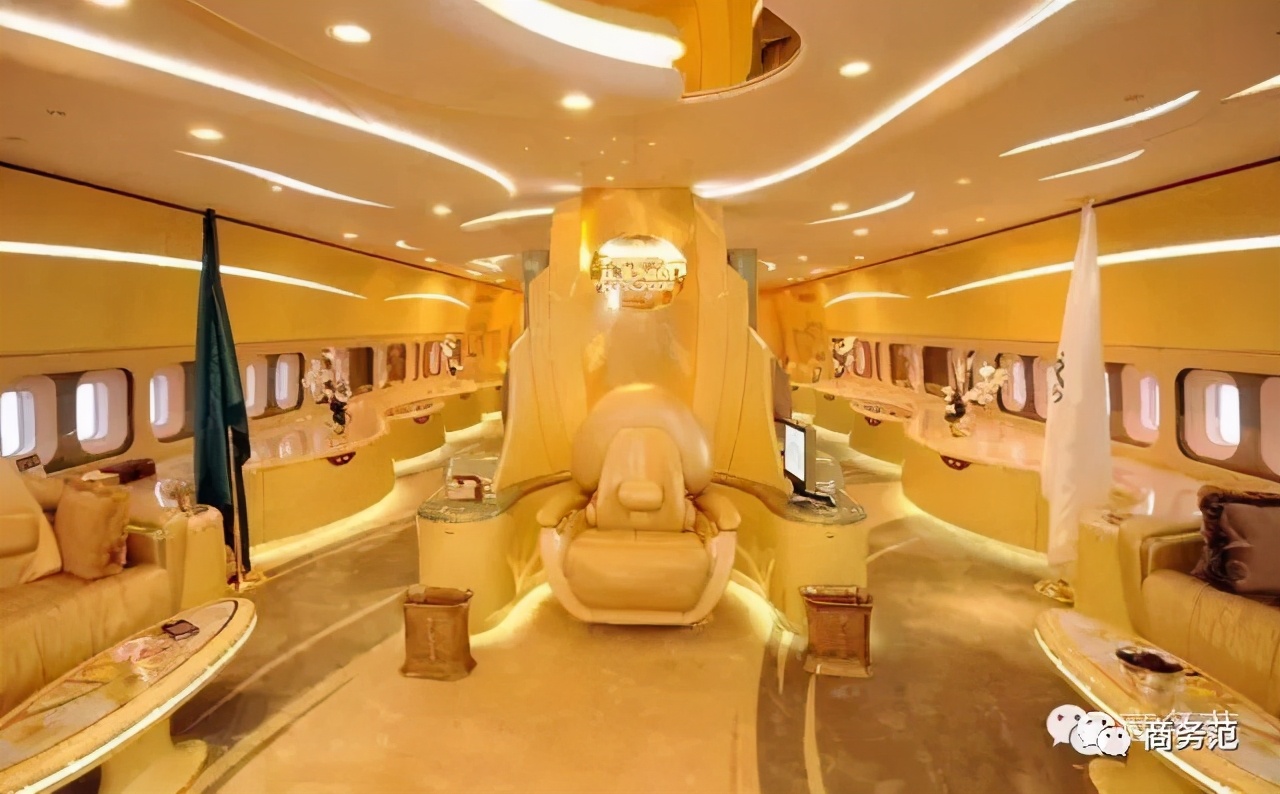 甲骨文老板Larry Ellison,也持有飞行执照,还是名专业飞行员。他除了拥有一架Cessna Citation小型飞机和一架称为“追梦者”的飞机外,还有湾流V、波音757等多架私人飞机~☞ 这几种机型最壕&抢手在富豪的心目中,哪些机型是他们的最爱呢?目前最贵的私人飞机是空客A380,价值超过6亿美元,因为体积大、内部豪华还被称为“移动宫殿”。有着“中东巴菲特”之称的沙特王子阿尔瓦利德,就是世界上第一个私人买下最大最贵的空客A380的人。看这签字仪式的排场,就知道是笔大买卖。买下A380之后,他光是在装潢上就砸下了3亿美元……按照自己的审美给飞机改头换面,改成什么样?当然是要金黄金黄金黄啊。还有空客A340-300,价值3.5-4.5亿美元,俄罗斯富豪阿利舍尔·乌斯曼诺夫就拥有一架,也是目前俄罗斯最大的私人飞机。波音747-430也价格不菲,文莱苏丹博尔基亚就通过汉莎航空支付了至少1亿美元买了一架,然后又花了1.2亿美元改装内饰。让整个机舱内都用黄金来装饰、起居室,卧室和浴室均以金色和水晶装饰、洗脸盆都是纯金制成的。除了空客和波音,湾流、达索、庞巴迪的私人飞机也深受其富豪青睐。比如马斯克的”座驾“,就是价值7000万美元的湾流G650ER,他在2015年收入囊中。☞ 喜欢从内到外都透露着壕斥巨资购入了私人飞机后,如何把它打造得具有个人特色也是一个大工程,而富豪们统一的默契就是喜欢从内到外都要透着壕,比如前面提到的,对金色格外有执念的沙特王子和文莱苏丹。川普的私人飞机也很夸张,这架价值1亿美元的波音757,机身配色和他的直升机相似,上面同样印着大大的TRUMP。碧昂丝Jay-Z夫妇,则拥有一架价值4000万美元的庞巴迪挑战者850,机身上面印着碧昂丝的姓Carter。这是碧昂丝在某年的父亲节时买给家人的礼物,里面有两个完整的浴室、一个卧室,以及厨房和起居室,之后也成为他们一家人的出行必备。内马尔在2015年购入的这架私人飞机Embraer Legacy 450,则显得低调一些。飞机舱门边上印有内马尔名字的缩写“NJR”,据说当时花费了1080万英镑收入囊中。内部则更具商务风,可以容纳六个乘客,卫生间,酒吧,衣橱等一应俱全,此后内马尔参加很多活动时都是乘坐这辆专机去的~不过比起壕来估计谁也壕不过沙特国王,他的波音747,就连外表都是镀了金线的。之前公务出访的时候,他甚至”随身携带“了两台自动舷梯,而且也镀金的↓可以说是一步也不用走了。 -