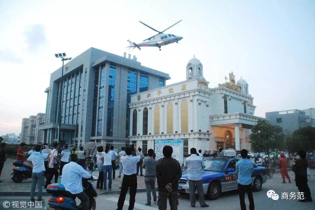 比如因组织领导传销活动罪被判刑9年的权健老总束昱辉,就曾以乘坐直升飞机,空降到盐城大丰和平饭店门口的方式,实现了自己的第一次衣锦还乡,以这种浮夸的登场方式引起了路人的围观。