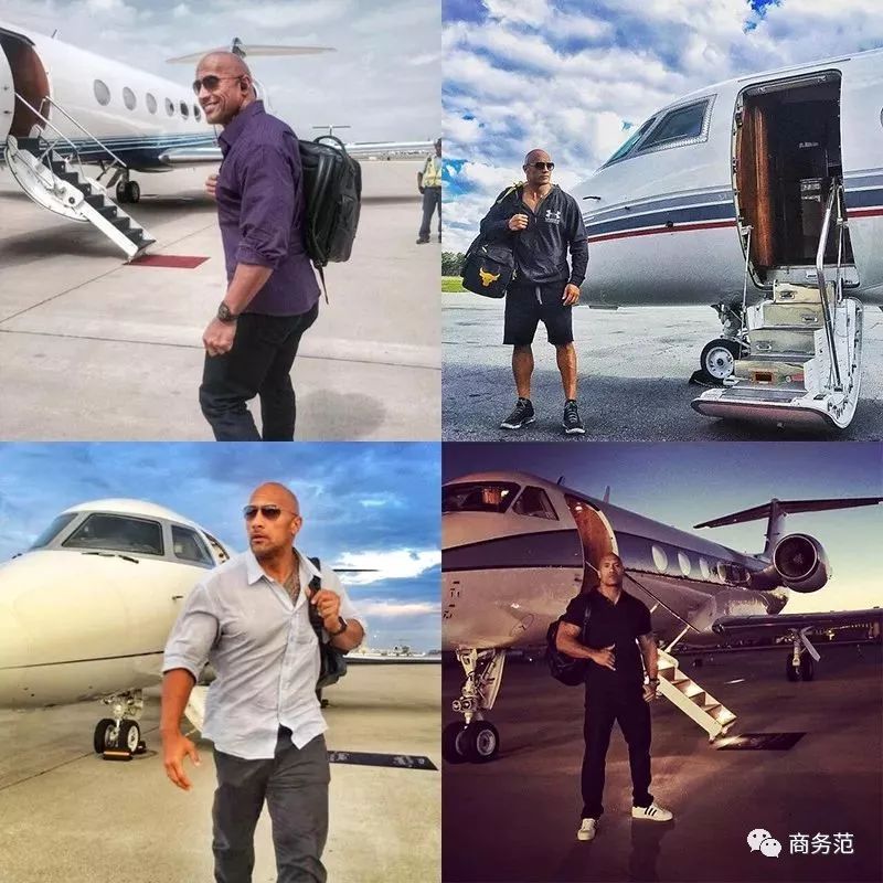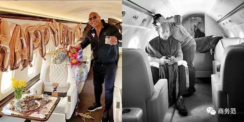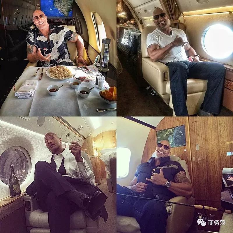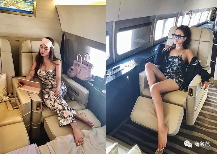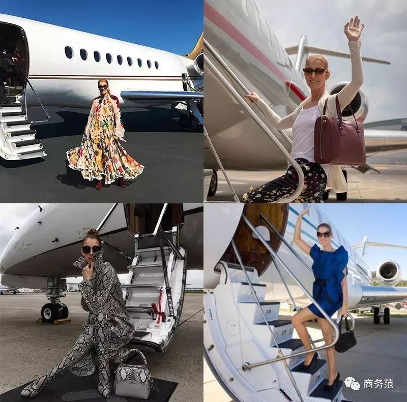 最重要的是,算上飞机的燃油费,每一趟大概只比商务舱贵1~2倍。对富人们来说,已经相当划算啦~比如Topshop老板菲利普·格林,曾经每天都会坐私人飞机从摩纳哥飞到伦敦上班......2016年身陷BHS风波时,还将自己原来的G550升级成了G650↓53岁的美国对冲基金经理比尔·阿克曼也用私人飞机作为上班交通工具,之前外媒就曾爆料,比尔有一架价值约3亿人民币的湾流550,方便他频繁往返于世界各国。马斯克去年来中国,途中为了赶时间,他的湾流650ER还上演了一出空中“超车”,赶超了一架比它起飞更早的波音777,提前抵达了上海,感觉开出了SpaceX的火箭水平...除了“上班代步”刚需,还有不少富豪大佬或明星会依赖私人飞机出行、购物等,方便自己的生活。比如贝佐斯,在“老房子着火”后,就总是和女友桑切斯乘坐价值大约6500万美元的湾流G650ER约会,迈阿密、波士顿随心飞。而Topshop老板娘Tina,平时花钱如流水,就常常坐着自家价值800万英镑的私人直升飞机,去仅仅20公里外的地方shopping......☞ 派对、玩乐、炫富需要如果说直升机炫富,炫的是主要是面子,那大型私飞炫富就是面子里子一起炫了。毕竟私人飞机价格高昂,拥有它就等于拥有了排面。比如花2.5亿美元买了马斯克SpaceX私人火箭旅行的日本富豪前泽友作,他就买了一架价值4亿人民币湾流G650,没事就呼朋引伴在私人飞机上开趴。之前金小小妹Kelly过生日时,也为自己的品牌Kylie Skin定制了一架私人飞机,带着姐妹团前往度假地,来了一场说走就走的“Kylie Skin Summer Trip”。这架飞机以奶油白为底色,机身上有她的护肤品牌Kylie Skin的Logo,姐妹团所有人都穿上了粉白相间的帽衫和休闲裤套装,看起来相当梦幻 。机舱内也是少女心满满,粉红色的Kylie Skin周边摆满了每个座位,有一种带姐妹嗨皮带姐妹飞的赶脚。要想用私人飞机炫富,如何拍照也成了一门学问。比如之前很火的”摔跤大赛“,以私人飞机为背景板的很可能是最大赢家。大多数名人,还是会选择规规矩矩的”登机照“。比如席琳·迪翁,她拥有一架价值约4200万美元的庞巴迪BD-700私人飞机,再加上日常出行经常包机,飞机对她来说是专供凹各种造型的。还有坐飞机频率超高的巨石强森,他的私人飞机“登机照”也有一打。虽然不知道这些型号不同的飞机是不是他租来的,不过其中一架Gulfstream G650就价值6500万美元,即便是租恐怕也不便宜~到了飞机上他更是不闲着,各种空中奢华生活他会事无巨细地展示给你看,吃饭、喝酒、“钓鱼”……活脱脱一个INS网红。有时还会在飞机上过个生日,理个发(确定有发可以理?)什么的,移动的豪宅果然物尽其用了。私人飞机里的豪华内饰、头等舱也是必晒项目之一。INS红人林心儿 (Elly Lam) 就喜欢在机舱里的大凹造型,每次都配合不同的“时髦”搭配。在俄罗斯,还有一家“私人飞机工作室(Private Jet Studio)”,专门提供给顾客摆拍( ̄. ̄)。为了让假名媛的效果更逼真,这里还提供专业的化妆团队,衣服、名牌包包都可以租来当道具。为了炫富也是拼了。因为私密性比较高,在炫富玩乐以外,还有一些有钱人借私人飞机从事着不法勾当。比如沙特王子阿卜杜勒·穆赫辛·本·瓦利德·本·阿卜杜勒·阿齐兹,就曾经打算用私人飞机从贝鲁特贩毒到沙特,还没飞在机场就查获被捕。还有臭名昭著的爱泼斯坦“萝莉航班”事件,用私人飞机哄骗未成年少女上岛,再把那些所谓的商界名流用私人飞机运送到这里消遣。而这些私人飞机,都是他控制受害人,炫耀财富,造势的手段。还用客机、直升机轮番接送,也是够没有下限的。大型私飞很烧钱,享受与争议并存