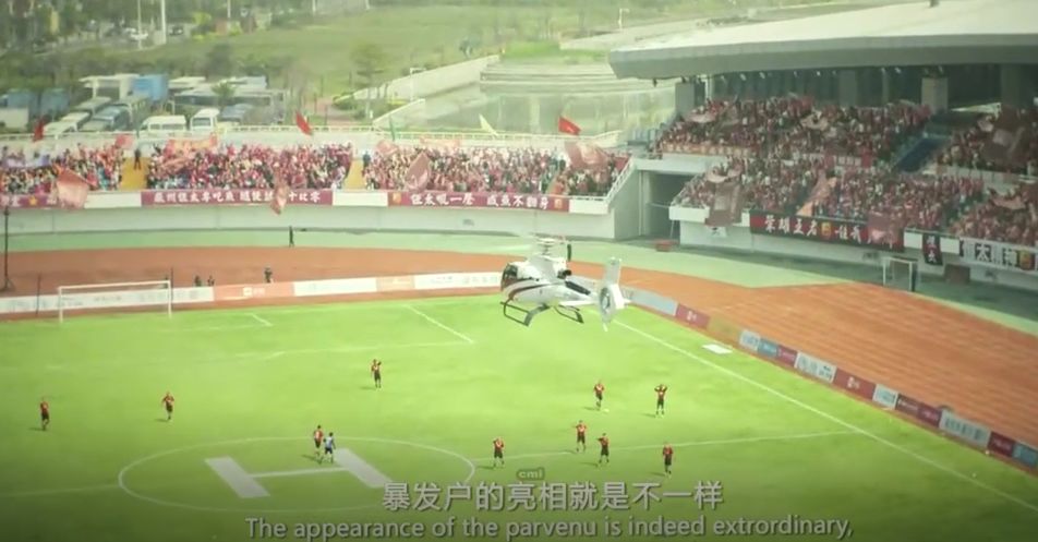 影视剧里这样的情节就很多。比如《西虹市首富》里王多鱼所带领的“大翔”队对阵恒太,直接乘坐直升机降临球场,暴发户的亮相就是不一样~