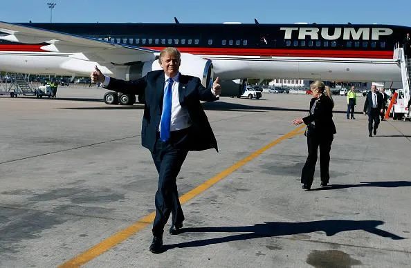川普也有一家女王同款,价值超一百万美元(去年已经卖掉了)。机身上面就印着大大的N76DT(DT是川普全名首字母缩写)和大写的TRUMP。