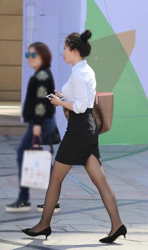 [/align]这个美女的穿搭一看就是职场女性,白衬衫、黑色短裙配上黑丝袜,一身非常正式的职业装,再穿一双黑色高跟鞋,尽显职业女性风采。黑色丝袜还有很好的瘦腿功效,能让双腿看起来更加匀称,更加性感。同时还有很好的保暖效果,别小看这薄薄的一层丝袜,在这个让人感到一丝凉意的秋季,既能起到很好的保暖效果,又能展示成熟女性的性感魅力。
