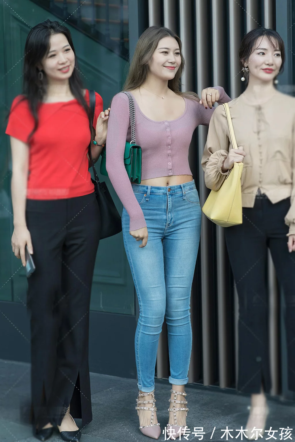 牛仔褲配什麼樣的鞋子,可以按照自己喜好來選擇,不僅它屬於百搭型。可以搭配運動鞋,休閒鞋,即使拖鞋也可以穿出隨性的美。而這位小姐姐選了一款高跟的鉚釘涼鞋,皮粉色的鞋面,細細的高跟,穿出了高挑的美。這款鞋子采用了皮粉色在色彩上跟上衣的淺紫色協調起來,穿出清新又活力的美,簡約大方又魅力十足。