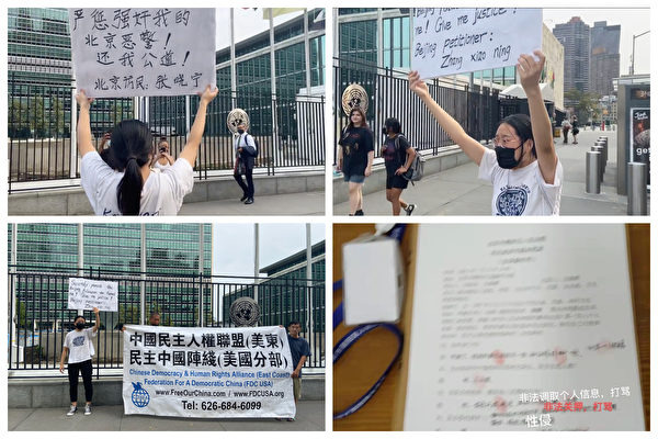 9月14日,第76届联合国大会在纽约联合国总部开幕。当天,刚来美国不久的中国留学生张小宁在会场外举牌维权,控诉在北京被关精神病院,要求严惩对她实施性侵的北京恶警。