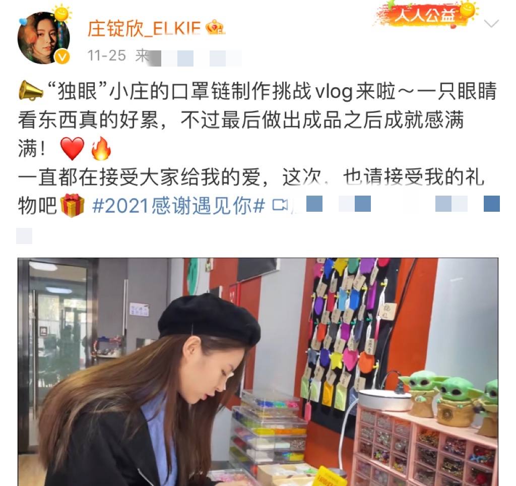 目前她没有参演影视剧,也未再发行单曲,但常在社交账号分享Vlog。