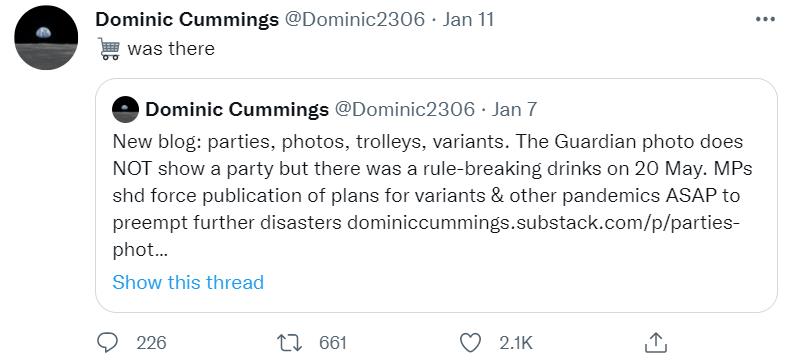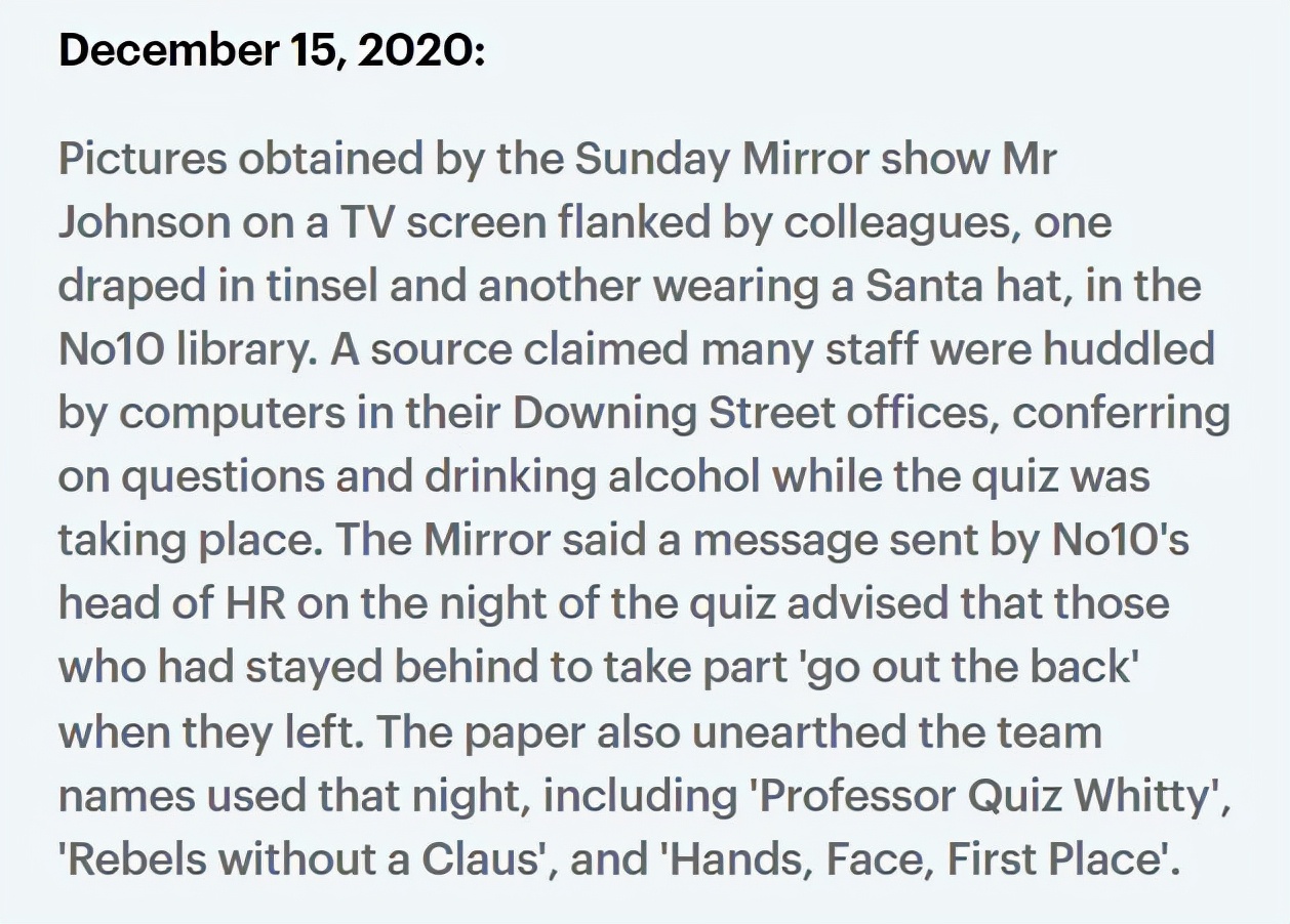 “2021年,一些工作人员跟我说过,我离开之后还有过各式各样的派对,首相都知道。”