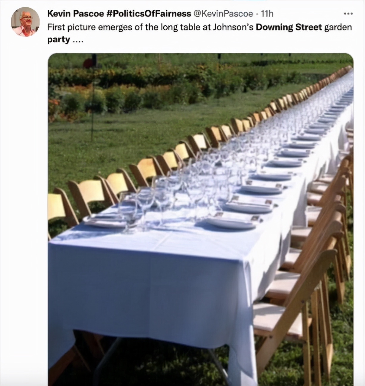 约翰逊唐宁街花园派对的长桌照片首次露面。