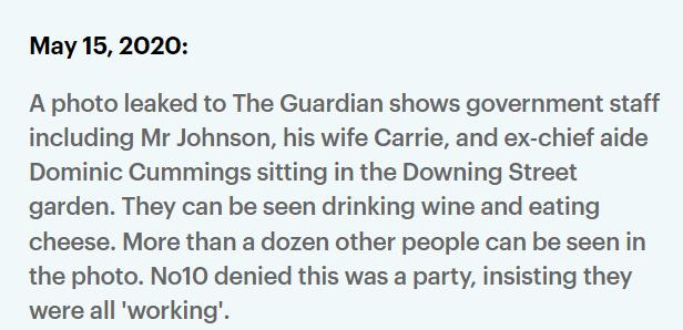 “还有2021年其他违反规定开派对的照片,其中一些拍到了首相。”