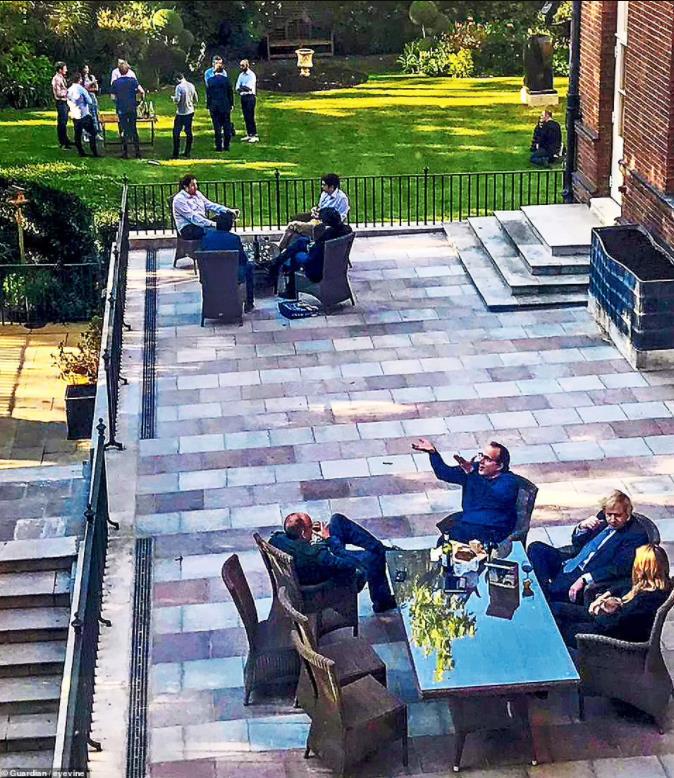 有人泄露给《卫报》一张照片,照片里的地点是唐宁街花园,花园里有十几个人,