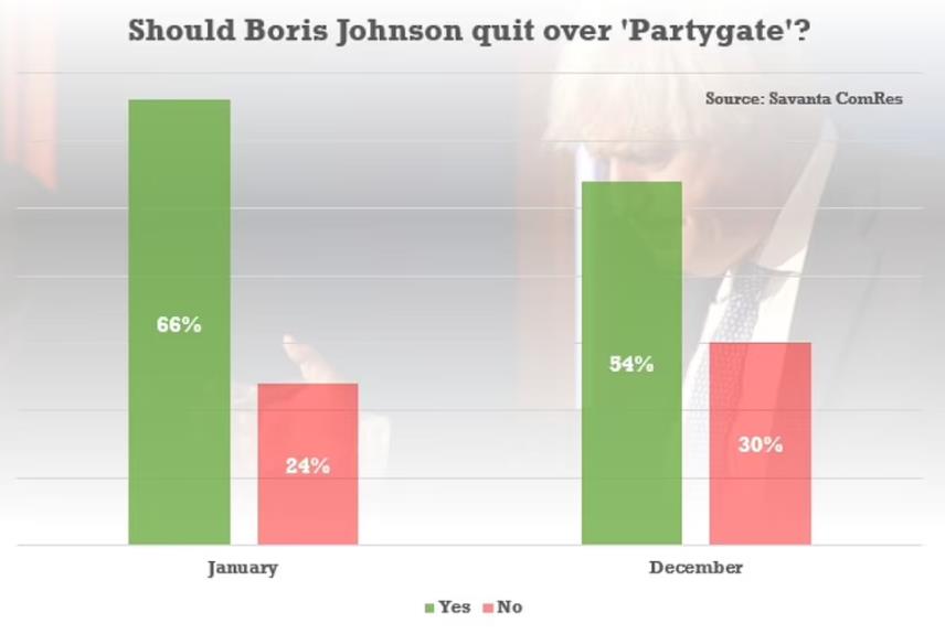 民意调查显示,一月份有66%的受访者觉得鲍里斯应该引咎辞职。