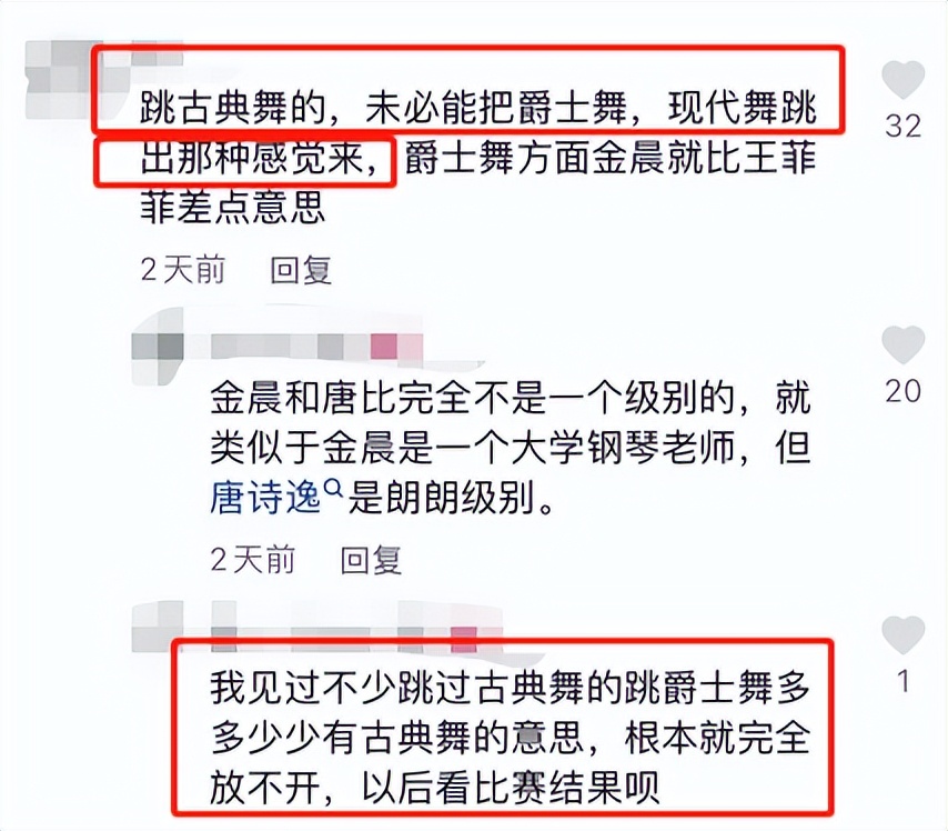 她还将唐诗逸与另一名专业舞者华宵一做对比:
