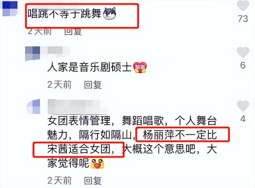 甚至有人拿出舞蹈家杨丽萍与前韩国女团成员宋茜做对比,称杨丽萍不一定比宋茜更适合女团。