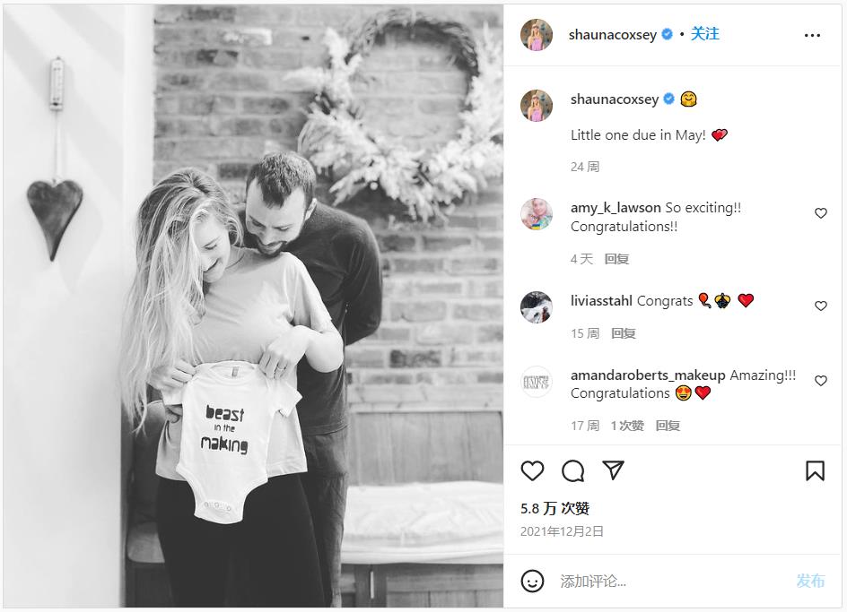 去年12月,Shauna宣布怀孕,表示孕产期是2022年5月。