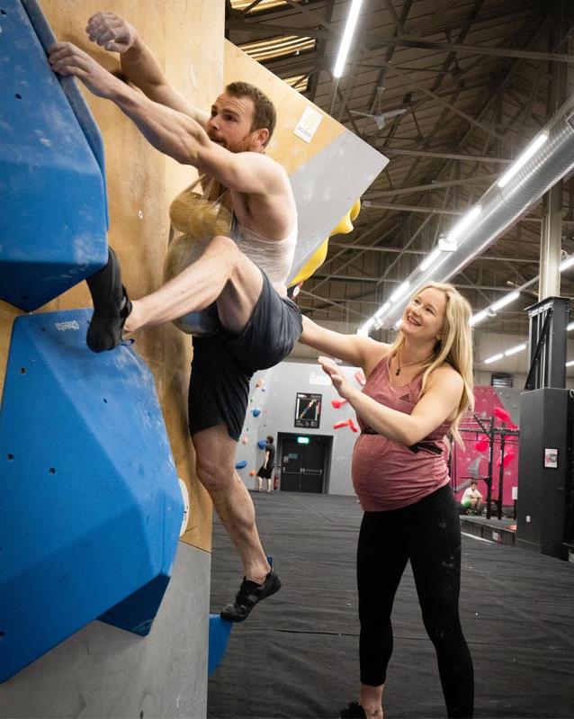 为了了解Shauna孕期攀岩是啥感受,她的丈夫还亲自体验了一次,