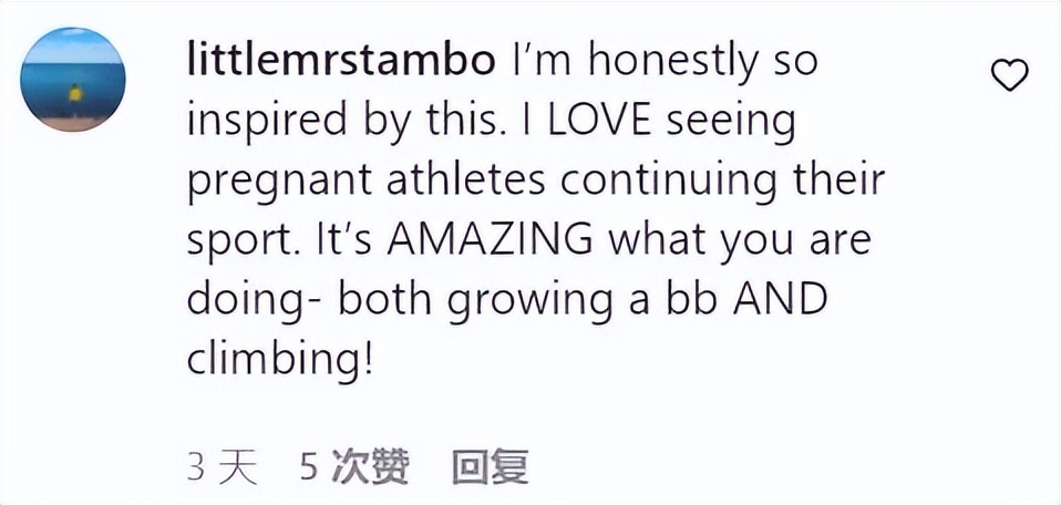 “我的一个好朋友,平时强壮又自信,她怀孕时就暂停攀岩了,因为她被人们的评价烦死了,也受不了自己孕晚期笨拙的样子。”