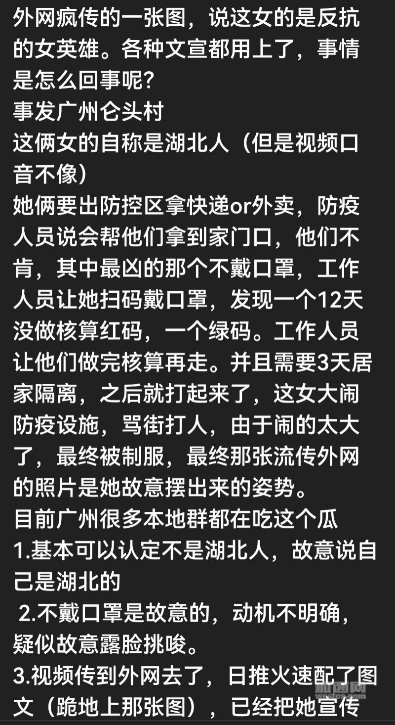 据多则网传影片显示,事发地点疑为广州海珠区仑头村,2名女子先是与防疫人员发生语言衝突,随後一名女子被一名穿蓝色防护衣的男子摔倒在地,随後被多人反绑手脚,另一名女子也被摔倒反绑。2名年轻女子1人躺地1人跪地,双手被反绑跪地女子表情坚定,桀傲不驯的影像在大陆与境外社群媒体被广为传播,获得大量的支持。