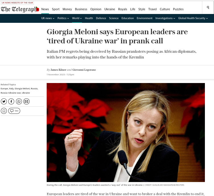 Giorgia Meloni says European leaders are ‘tired of Ukraine war’ in prank call