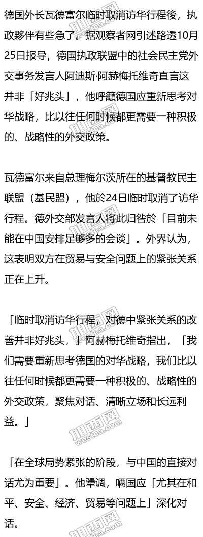 ¡¶°ØÁÖÈÕ±¨¡·Ö¸³ö£¬µÂ¹úǰ×ÜÀíÊ©ÃÜÌØµì¶¨ÁËÒÔ×ðÖØÓë¶Ô»°ÎªºËÐĵÄÖе¹ØÏµ»ù´¡£¬µ«ÏÖÔÚ£¬µÂ¹úÛ§Ô½À´Ô½×ßÏòÒâʶÐÎ̬»¯¡¢ÃÀ¹ú»¯µÄ¶Ô»ªÕþ²ß£¬µÂ¹úÆóÒµ½ç¶Ô´ËÉî¸ÐÓÇÂÇ¡£