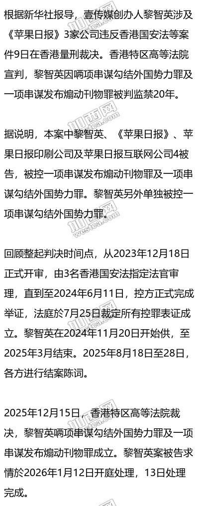黎智英遭判20年