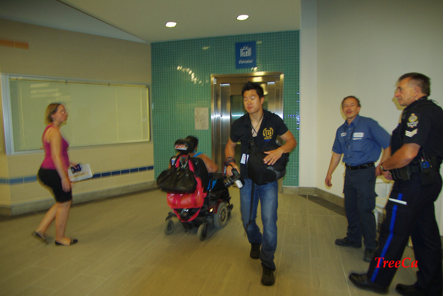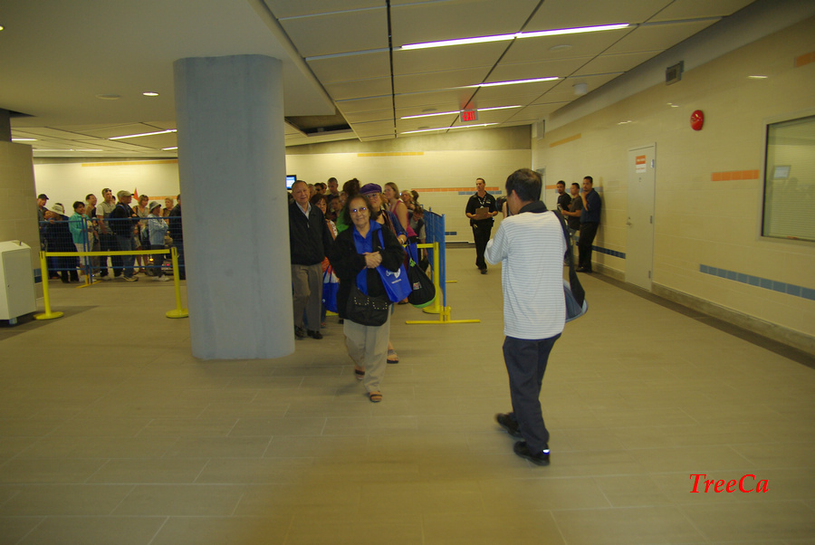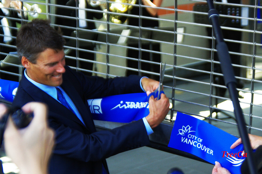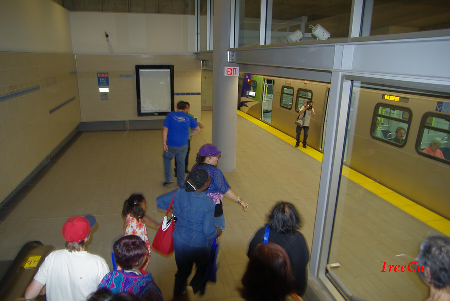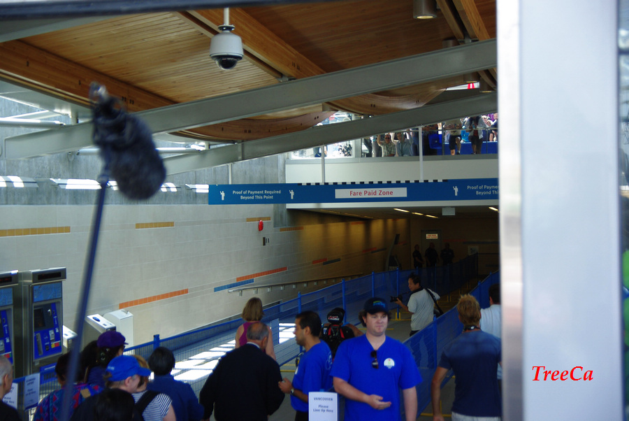 2009年8月17号下午1:00正,在Cambie 夹 Braodway 的地铁站门口,温哥华市长罗宾逊剪彩之后,人们兴高采烈涌进去排队等候乘搭第一班正式通车的加拿大线列车。