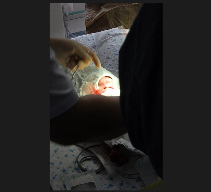 图为鞍山市中心医院新生儿病房里,主任李海燕和儿外科主任吴萍正在抢救小女婴。婴儿喉咙处有个5厘米长,深及气管软骨的伤口。“软骨已经被切断了,差一点就伤到气管黏膜。”吴萍一边缝合伤口,一边说:“孩子的脖子几乎切断一半,再深半厘米,孩子就没命了。”孩子伤口边沿齐整,疑是刀伤,极可能是人为造成的。伤疤将会伴随孩子一生。