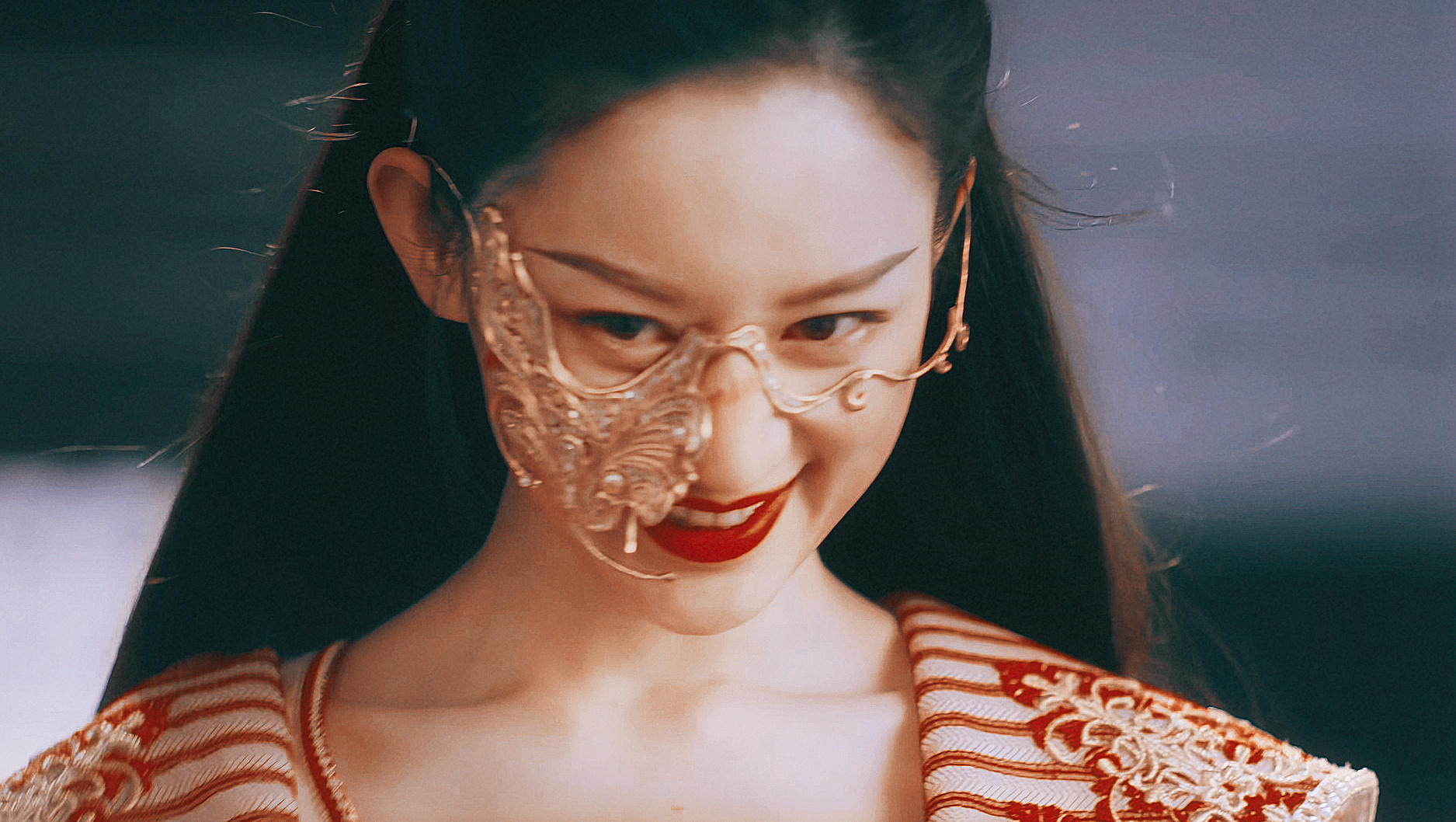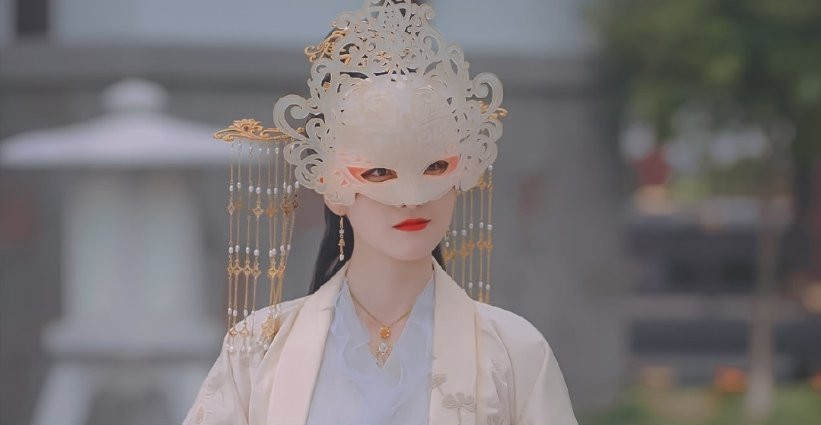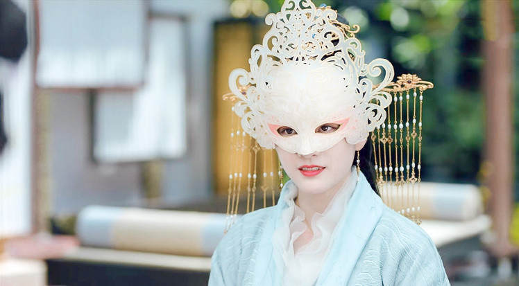 不得不说,《与君初相识》剧组在面具这一块真的很用心了,戴了面具后的郭晓婷颜值上升了不少。
