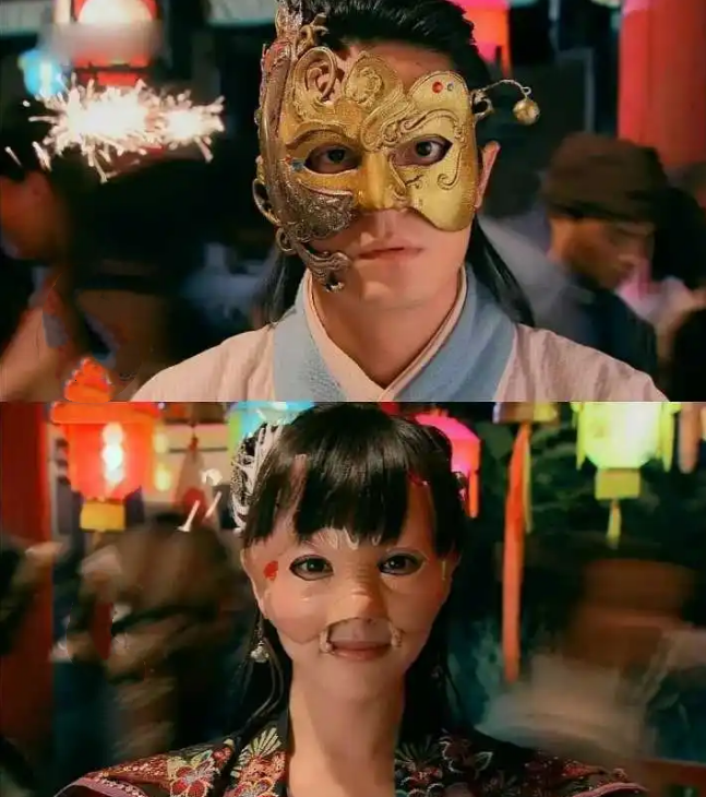 影视剧中戴面具的名场面还挺多的,比如“徐长卿”和“紫萱”初次见面时两人就戴着搞笑面具。