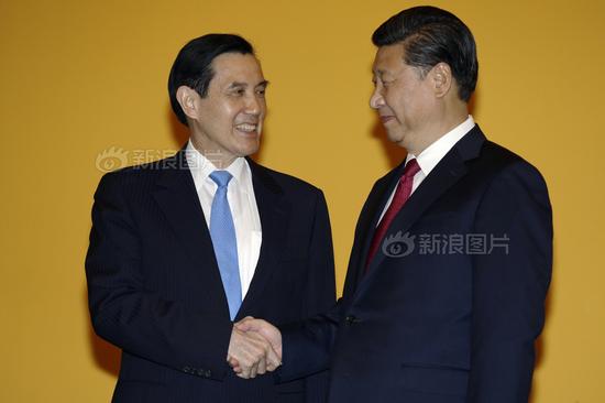 习近平佩戴红色领带,马英九佩戴蓝色领带。