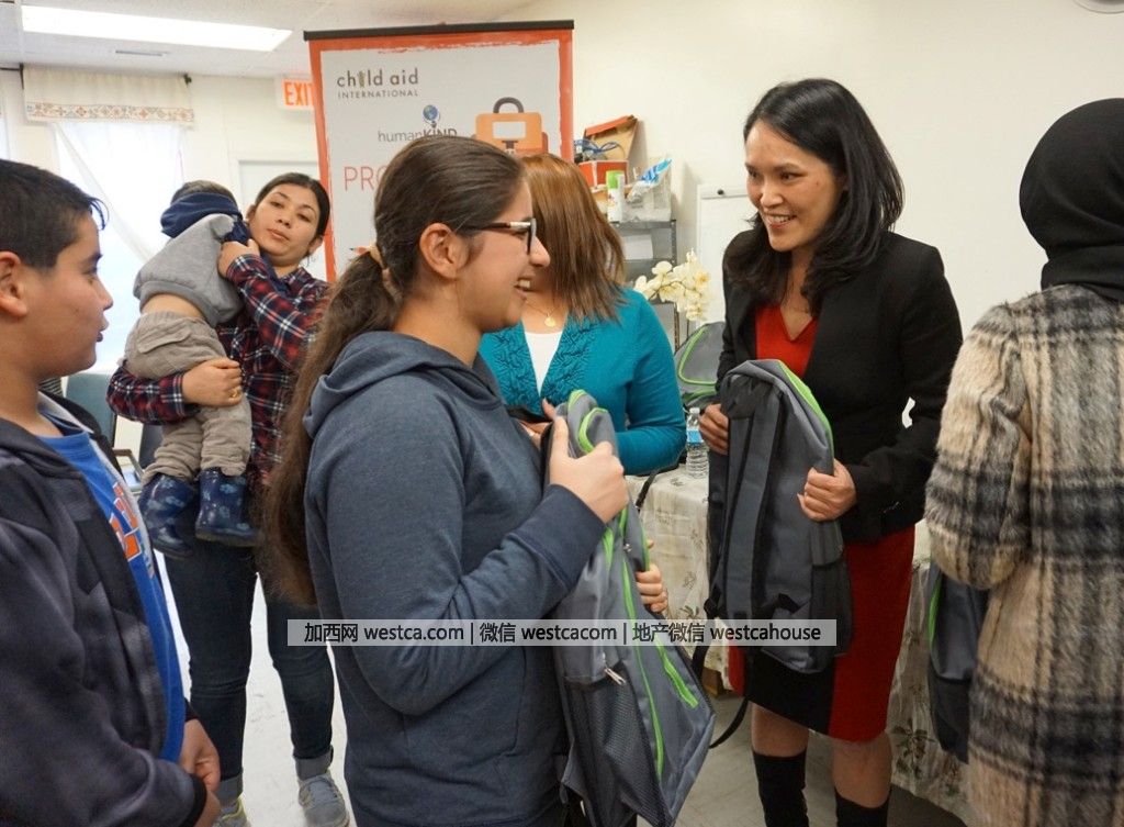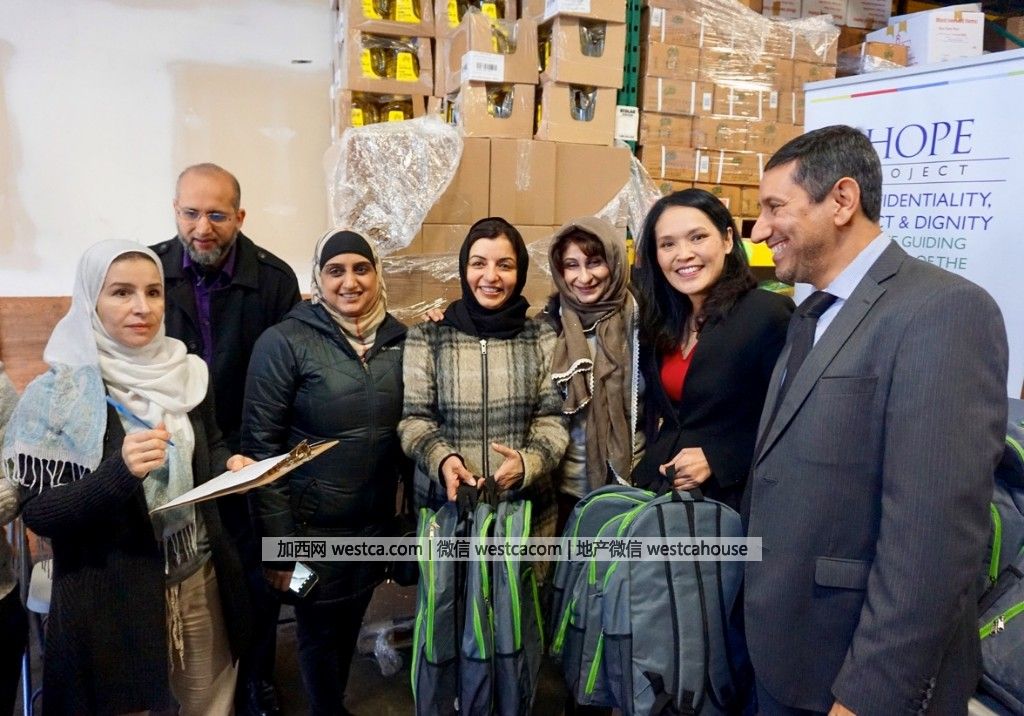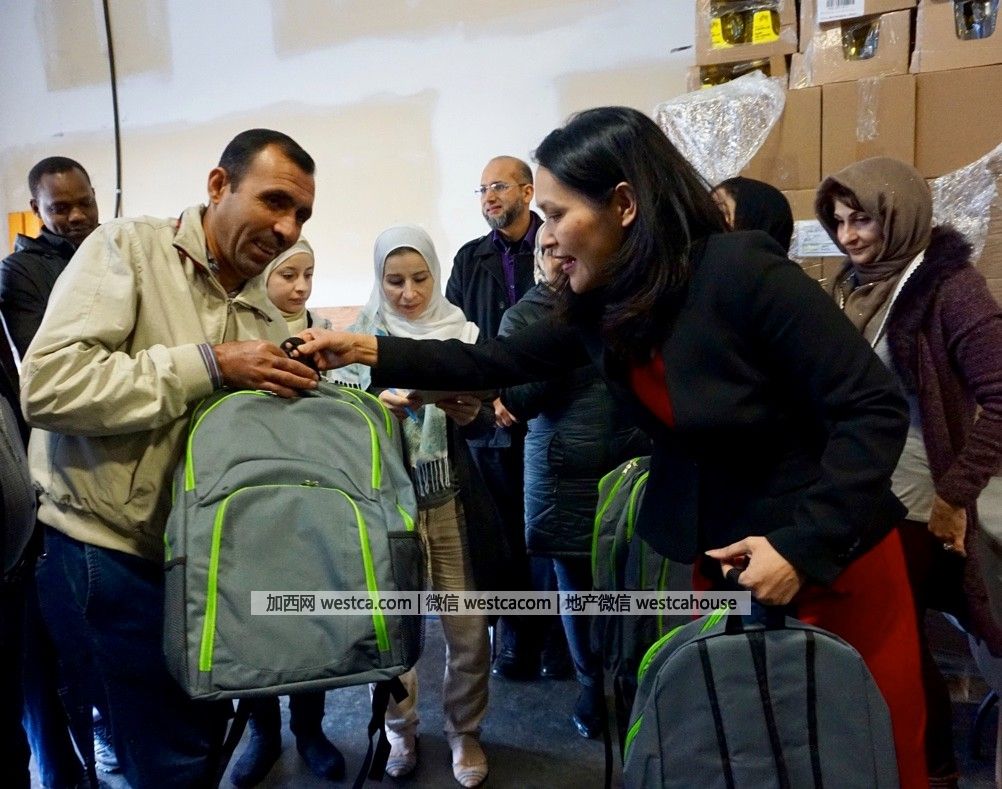经过半年多的筹备,温哥华东区国会议员关慧贞连同多个中东裔的社团领袖一起带同四百多套书包、餐袋和水瓶到素里穆斯林食物银行和中东友谊中心派发。