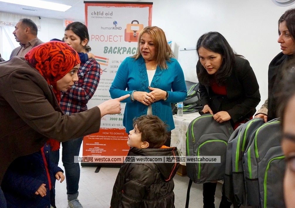 这项名为背包计划的行动,是年初关慧贞跟穆斯林社群领袖会面谈论难民的需要时谈出来的。由於抵达加拿大的敍利亚难民当中儿童的比例很高,故此想到协助他们上学。经过多个月的筹备,当中包括筹款、订购、入包等工作後,日前终於开始派发。