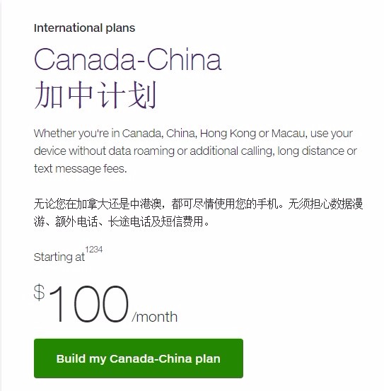 近日,加拿大国家级手机通信运营商Telus针对经常往返于中国大陆、香港和澳门地区的用户推出了一项手机计划“Canada-China Your Choice”,月费为100加币起,用户可以无限拨打电话和发送手机短信,无需支付额外的漫游费、长途费和短信息费用。