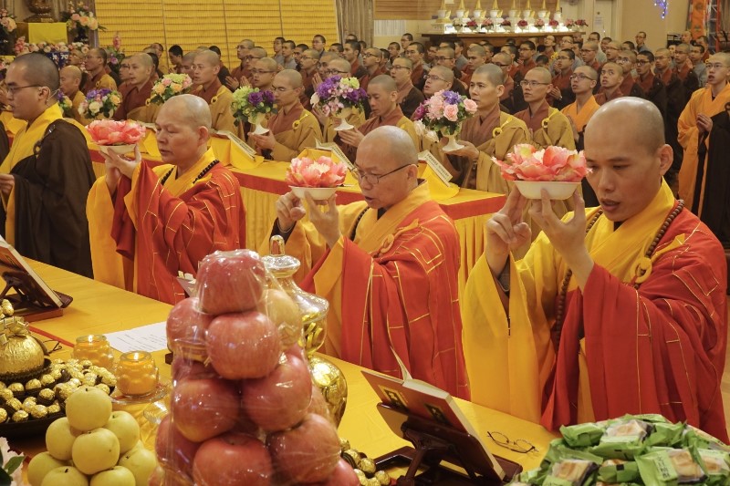法會內容:僧團500眾恭禮《大般若懺》、《慈悲道場梁皇寶懺》、誦《大般若經》,60僧眾放大蒙山施食亡者,普佛上供祈福超薦,齋供超過500僧伽等。