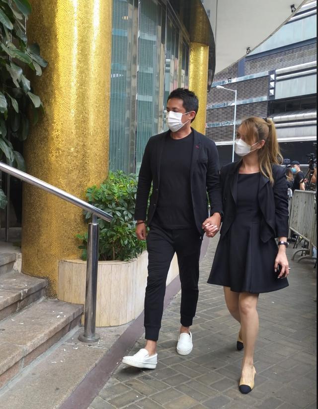 許晉亨攜手前律政司司長梁愛詩到場,兩人雙手緊握相攜走進殯儀館,姿態很容易讓人誤解。