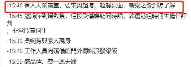 沒想到,在追悼進行到下午,突然有人大鬧靈堂,要求和何超瓊、何超賢見面,最後叫來警察之後到場了解。目前警察也正在維持秩序中。