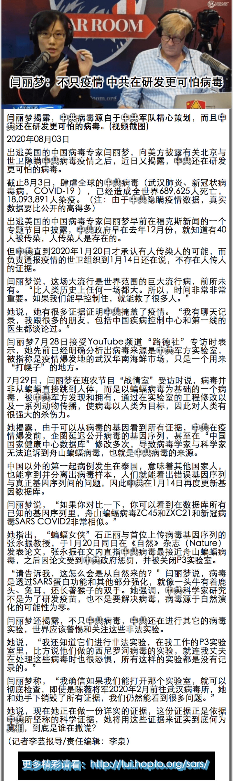 闫丽梦:不只疫情 中共在研发更可怕病毒