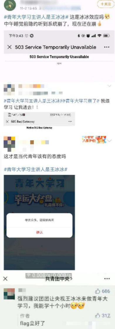 很多网友纷纷表示这是自己第一次那么喜欢观看青年大学习,却场面火爆到根本挤不进去;有一些粉丝调侃称这是“冰冰”效应,并表示自己中午睡觉前系统就崩了,过去了那么长时间系统还在崩;还有部分粉丝建议让王冰冰继续主持青年大学习,并表示自己能学十个小时。