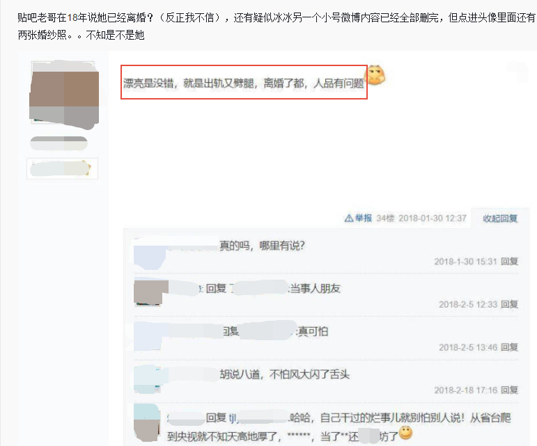 还有网友爆料王冰冰长得是很漂亮,但似乎曾经的感情状态不太好,还离过婚,而且疑似她的小号微博内容也全被删光了,但点进头像可以看到里面还保留着两张婚纱照。