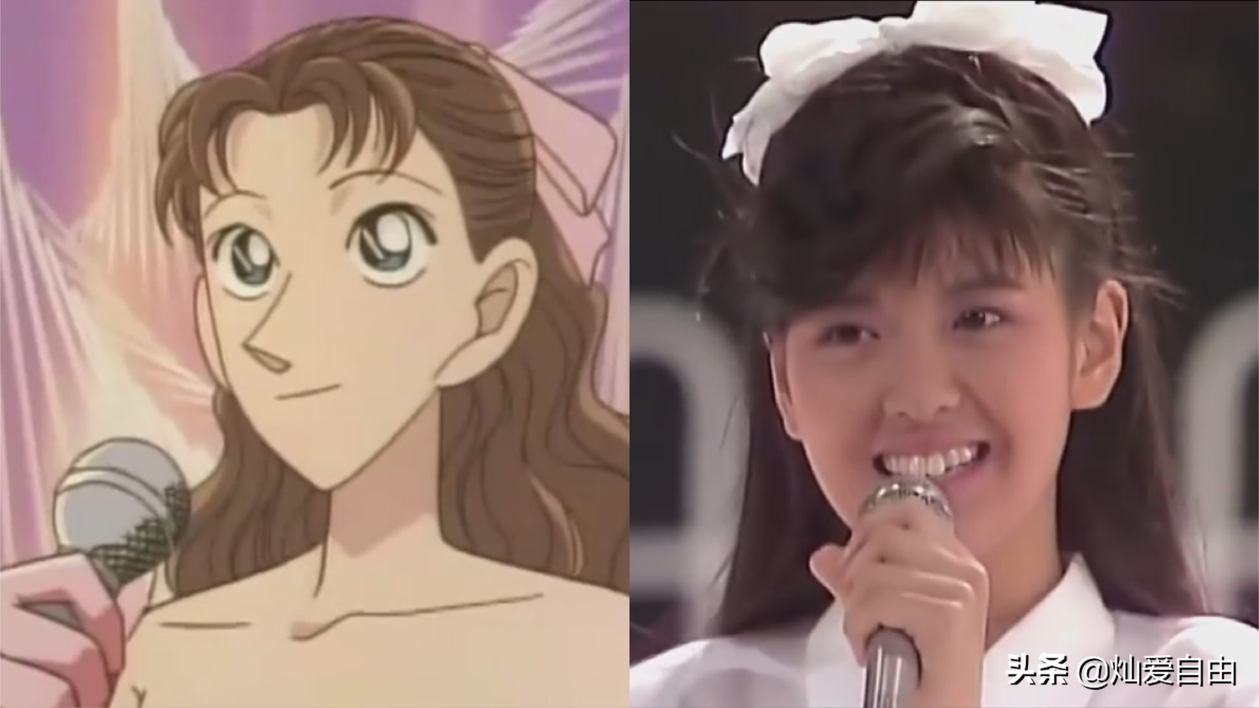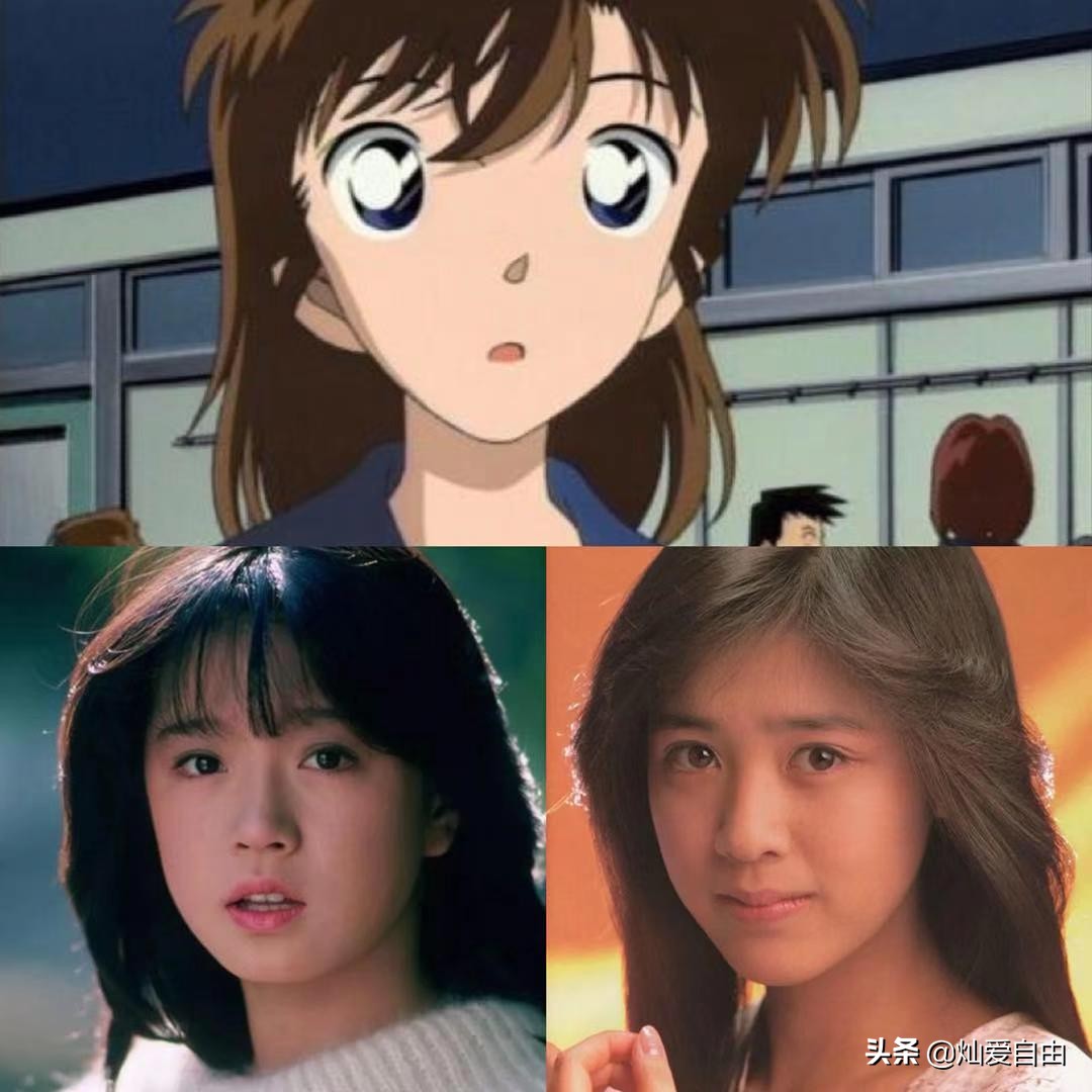 《名侦探柯南》的女主角毛利兰,真人原型常被认为是工藤静香,特别是小兰的发型与早年的工藤静香一样,都有个漂亮的扬起的弧度。