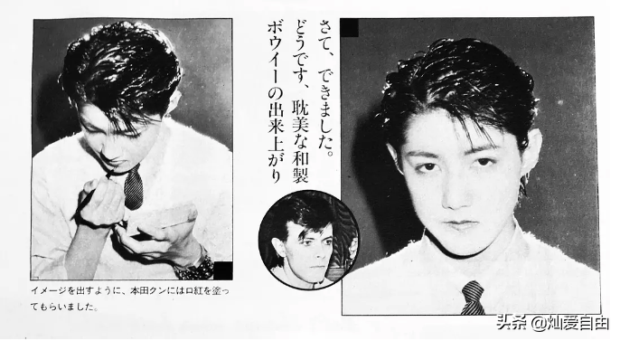 杀马特鼻祖( 褒义褒义)、美少年偶像本田恭章,80年代初以视觉偶像出道,也是一张绝世漫画脸。