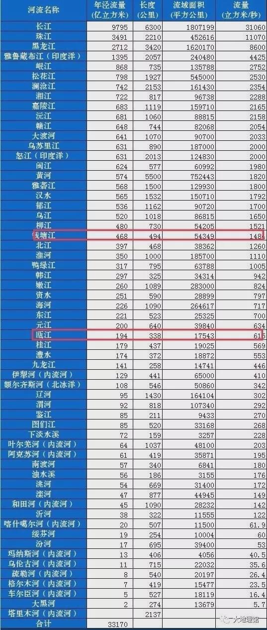 60條河流的流量排行榜上,浙江省也只有這兩條河上榜。