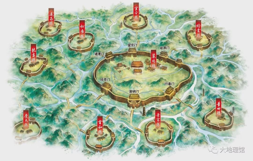 福建不一樣,因為腹地幾乎沒有平地,早期根本沒有像樣的城市,一開始是福州、建州兩個行政區(福建因此得名),明清以來才有了興化府(莆田)、寧德府、漳州府,閩西南汀州府設立最晚。今天福建中西部的地級市三明、龍岩,古代只是縣級駐地。